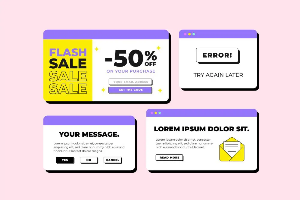Los pop-ups son ventanas secundarias que se abren automáticamente sin el consentimiento del usuario cuando navega por internet. Pueden aparecer como ventanas completas, nuevas pestañas o cuadros flotantes.